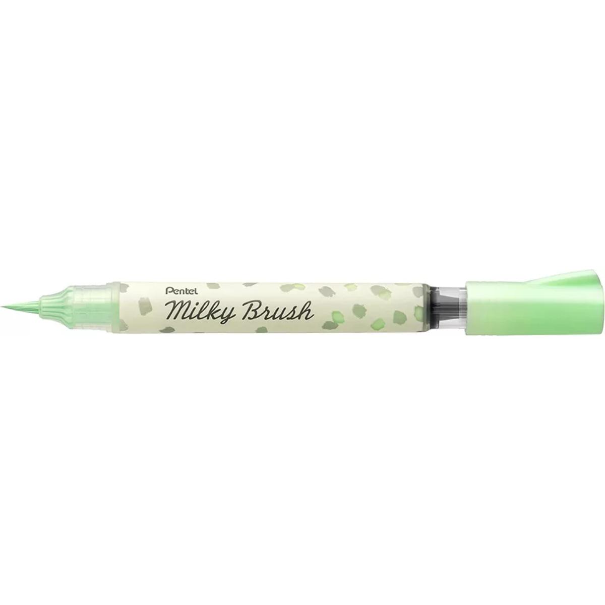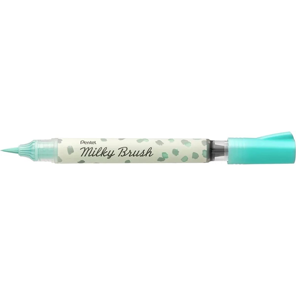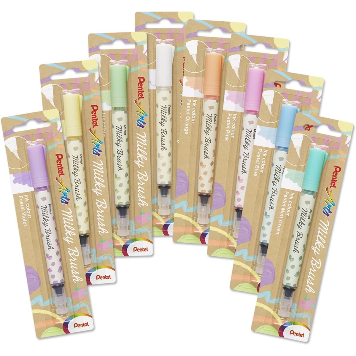 Uma nova e exclusiva adição à família de Canetas Brush da Pentel. A Milky Brush traz oito lindas cores em tons suaves e modernos, incluindo a primeira caneta brush com tinta branca.