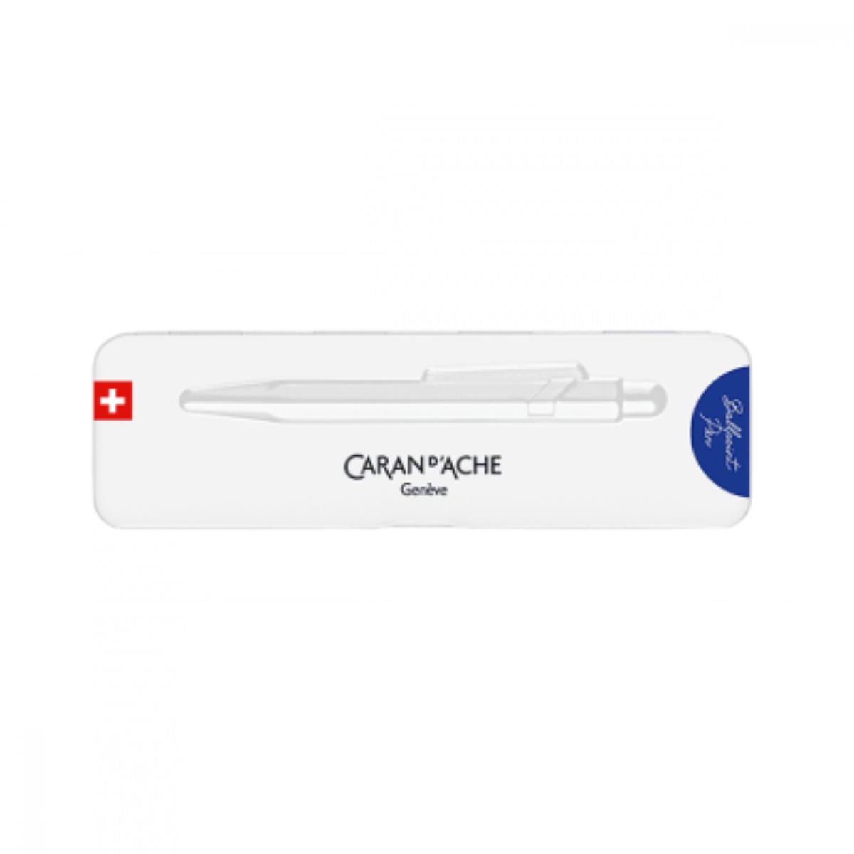 Com botão e clipe de metal, a caneta acompanha um cartucho de tinta azul Caran d'Ache Goliath, garantindo uma escrita suave e precisa.