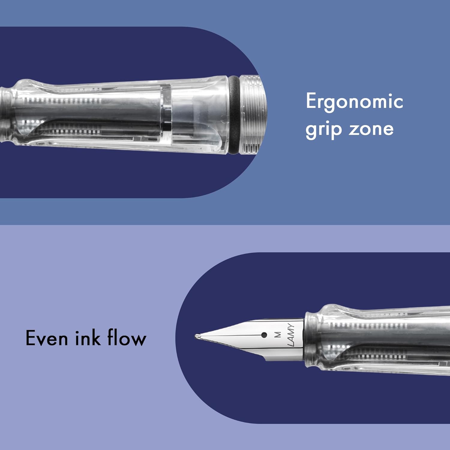 Observação: Todas as canetas LAMY passam por um rigoroso controle de qualidade, incluindo testes com tinta. Portanto, se houver algum resíduo de tinta azul na sua caneta, fique tranquilo, pois isso é completamente normal.