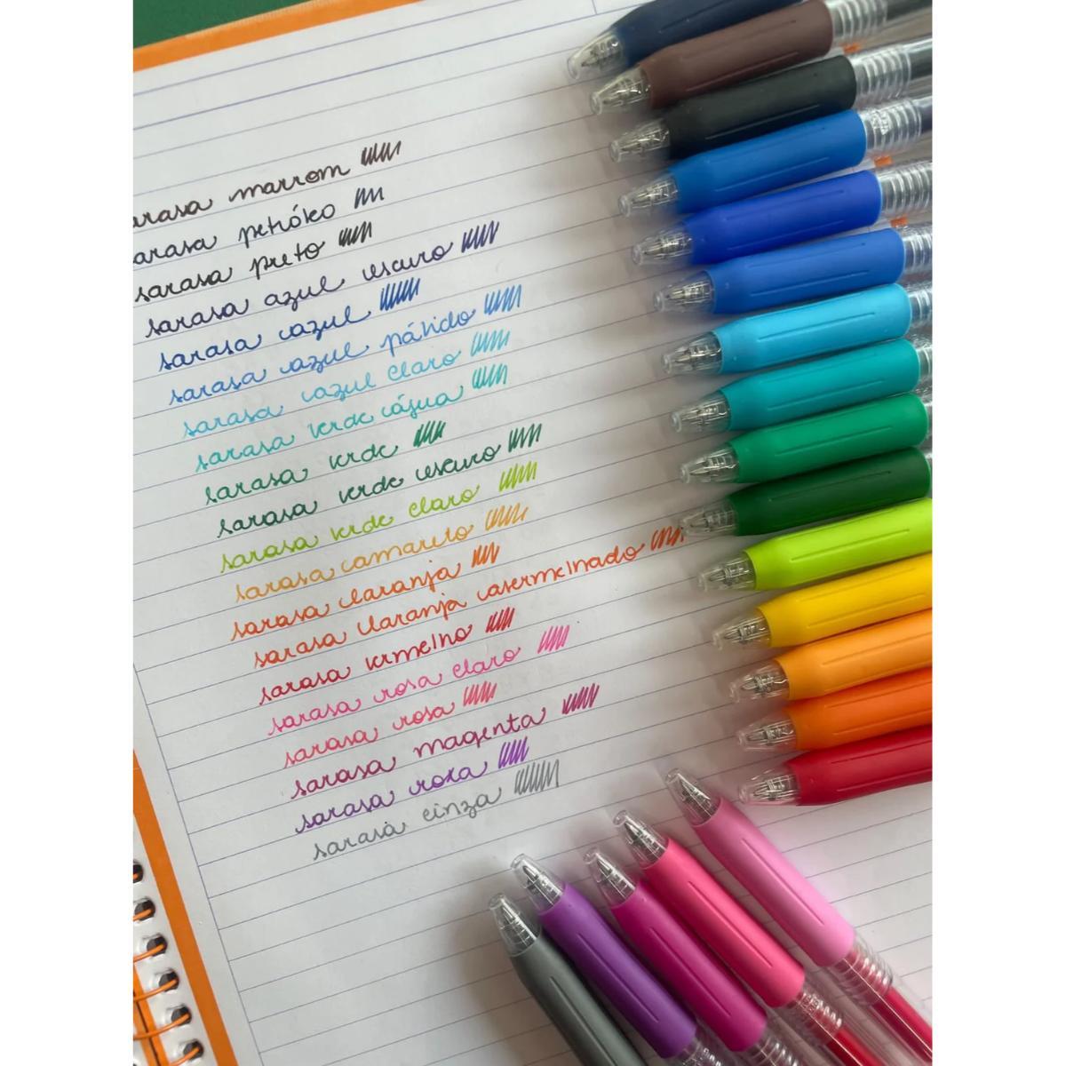 Uma das principais características da Sarasa Clip é o seu clipe resistente e retrátil, que garante praticidade no transporte, permitindo que você a prenda em cadernos, bolsos ou estojos. Além disso, a tinta gel de secagem rápida evita borrões, tornando-a uma excelente opção tanto para destros quanto para canhotos.