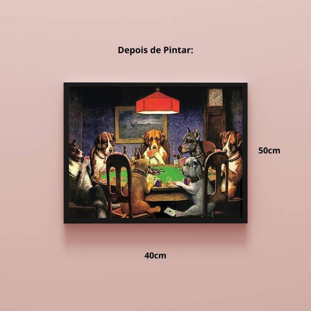 Invista em sua arte e descubra a alegria de pintar com o Kit de Pintura Numerada em Tela - Cães Jogando Pôquer - 40x50cm!