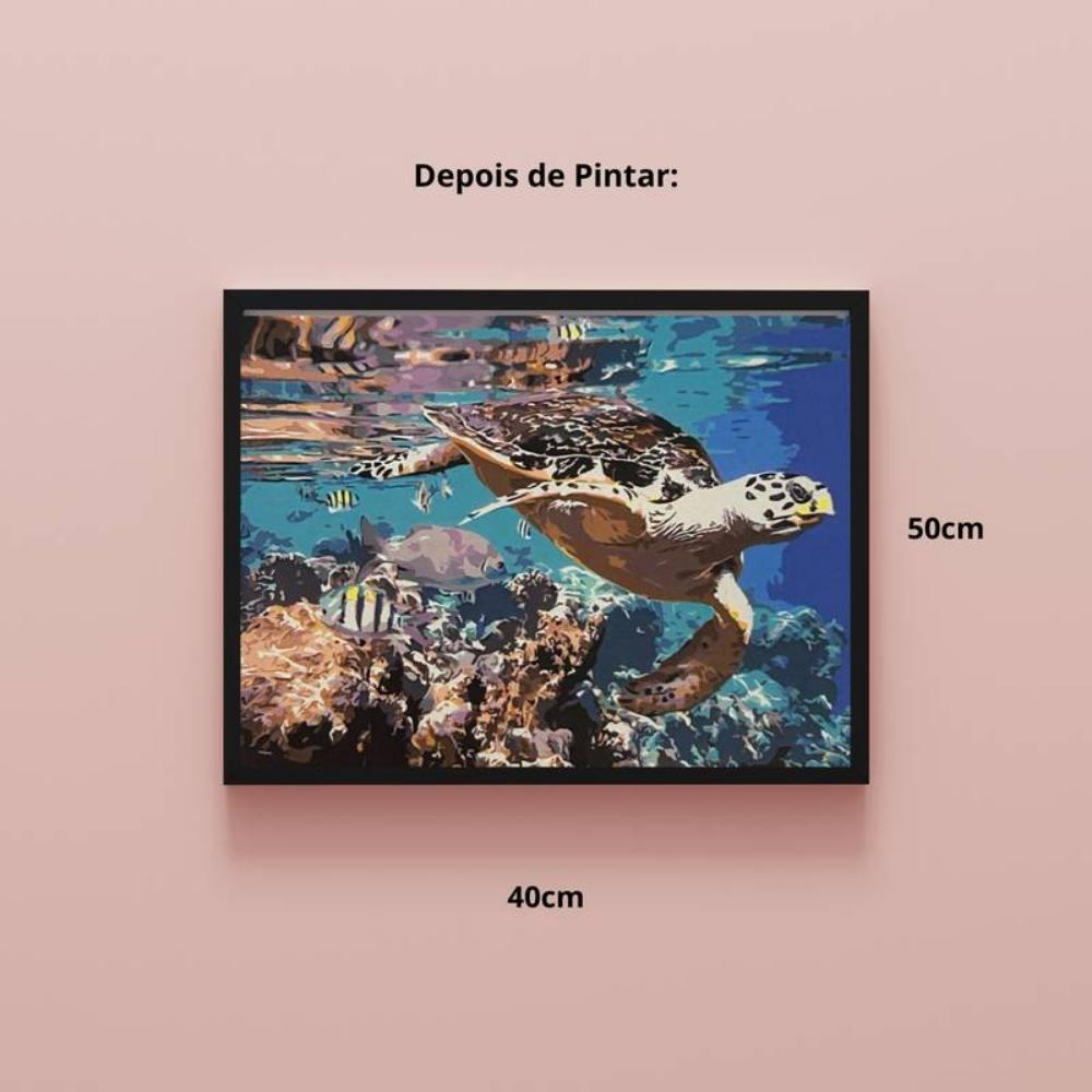 Invista em sua arte e descubra a alegria de pintar com o Kit de Pintura Numerada em Tela - Tartaruga Marinha - 40x50cm!